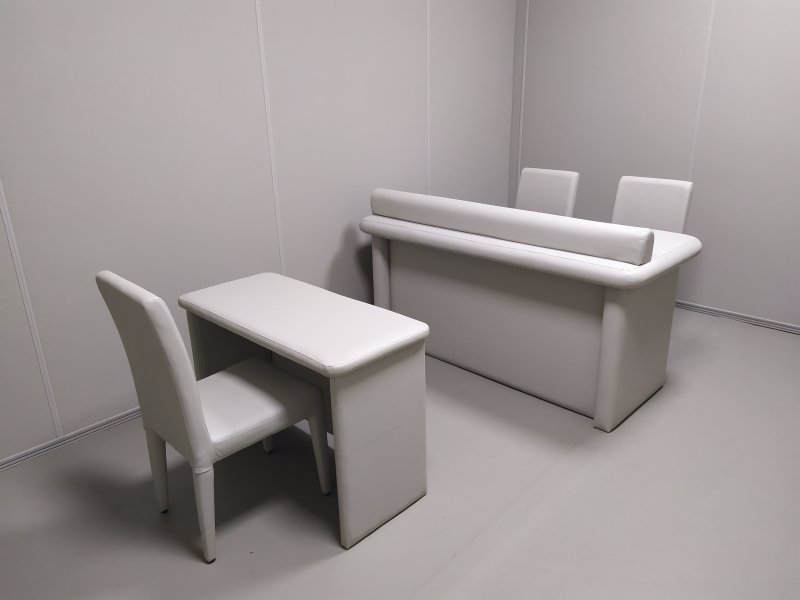 防撞軟包桌椅的設置,主要是為防止因被審訊談話(huà)人因發(fā)生碰撞而造成意外,在審訊室、談話(huà)室桌子椅子都要進(jìn)行軟包或圓角處理,不能有尖銳突出角。常用規格:1800*800*760mm,2000*800*760mm,1600*760*700mm,可根據房間尺寸定制;顏色以黑色和淺灰色皮革軟包為主,也可定制其他顏色。